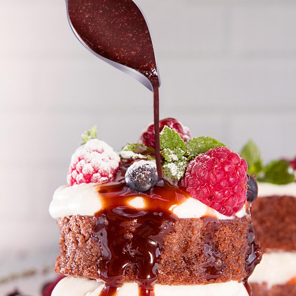 - Bước 1: Lựa chọn loại sốt phù hợp với món ăn của bạn (ví dụ: sốt trái cây, sô cô la, kem tươi,...).