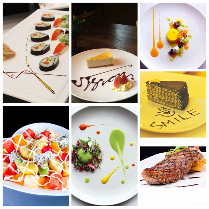 - Dùng để vẽ, trang trí món ăn với các loại sốt như: sốt trái cây, coulis, caramel, sô cô la, sốt kem, nước sốt salad, dấm balsamic ,...