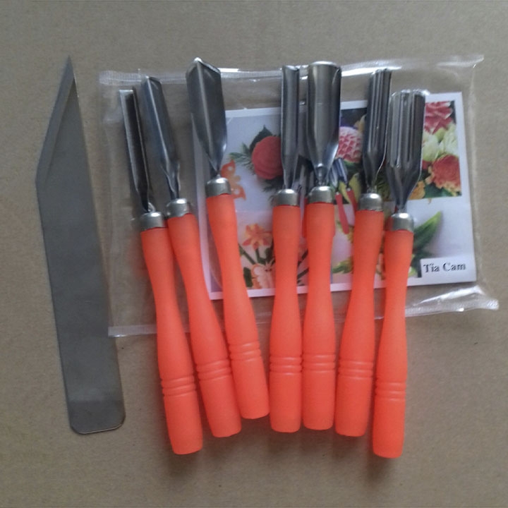 Bộ dao sủi, tỉa rau củ inox cao cấp (8 món, cán cam)
