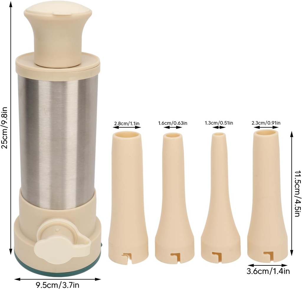 📦 Gồm: 1 máy nhồi thịt inox 304 + 4 đầu phun nhựa (1.3cm – 2.8cm)