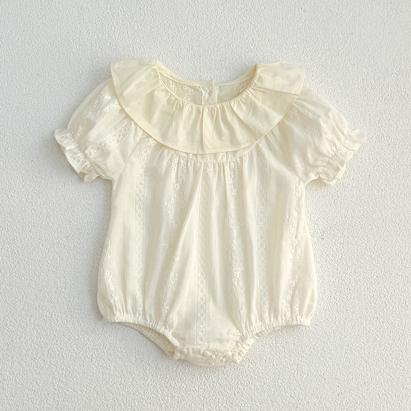 🎀 Set bao gồm: 1 áo liền quần thêu trái dâu + 1 băng đô cài tóc ton-sur-ton cực xinh