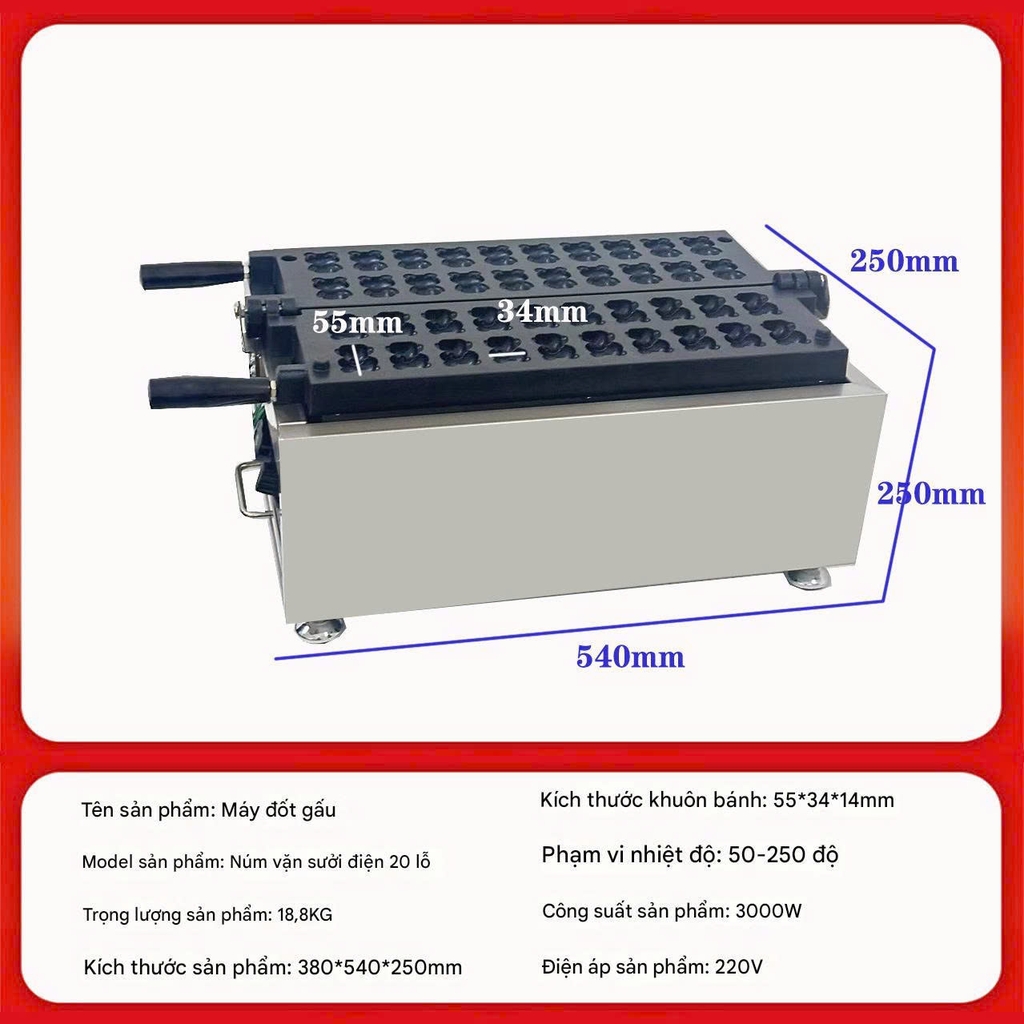 Máy nướng bánh đường phố Waffle Maker Electric với công suất lớn 3000W là một thiết bị đa năng, phù hợp để làm các loại bánh như bánh waffle, bánh cá Taiyaki, bánh trứng gà non và nhiều loại bánh khác. Với hai phiên bản sử dụng điện hoặc gas, máy mang lại sự linh hoạt trong việc lựa chọn nguồn năng lượng, đáp ứng nhu cầu của cả hộ gia đình và kinh doanh.