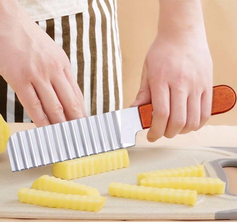 Dụng cụ cắt thái xén nạo rau củ quả hình gợn sóng đẹp mắt tay cầm bằng gỗ không đau tay