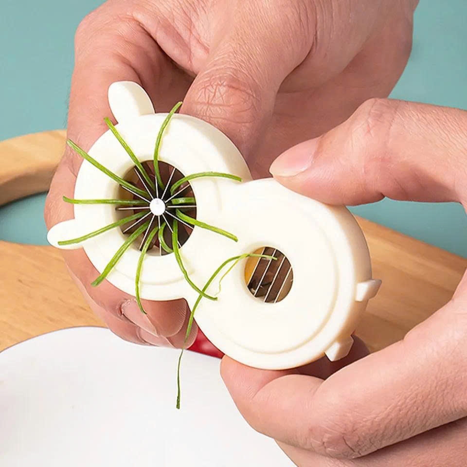 ✂️ Dao cắt siêu bén gồm nhiều lưỡi thép inox cứng cáp, sắc bén – giúp bạn cắt hành lá, rau muống, đậu que,... thành sợi mảnh đều tăm tắp chỉ trong vài giây.