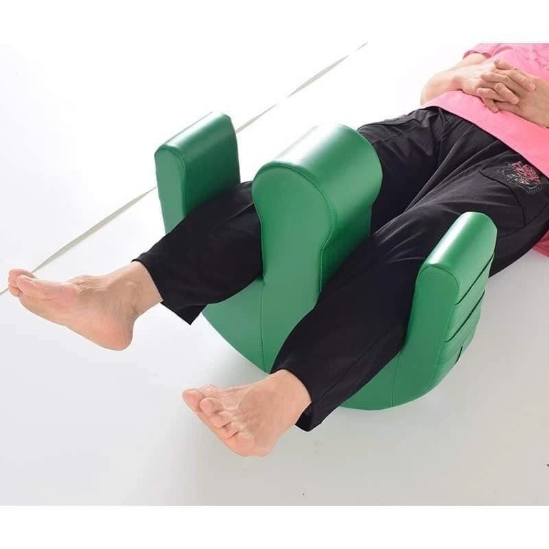 Đặt gối dưới chân bệnh nhân, phần cong của gối ôm ngang đùi.