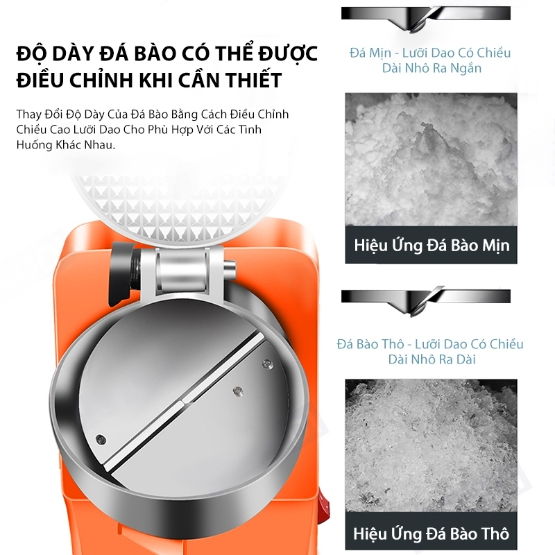 🔷 Máy Bào Đá Tuyết, 4 lưỡi, 2 Nắp DR-207 Bào Siêu Mịn 220V 500W Bảo Hành 3 Tháng Cam PVN8003