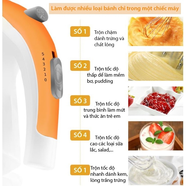 Đánh trứng, đánh kem, nhào bột lỏng, tạo bọt cà phê,...
