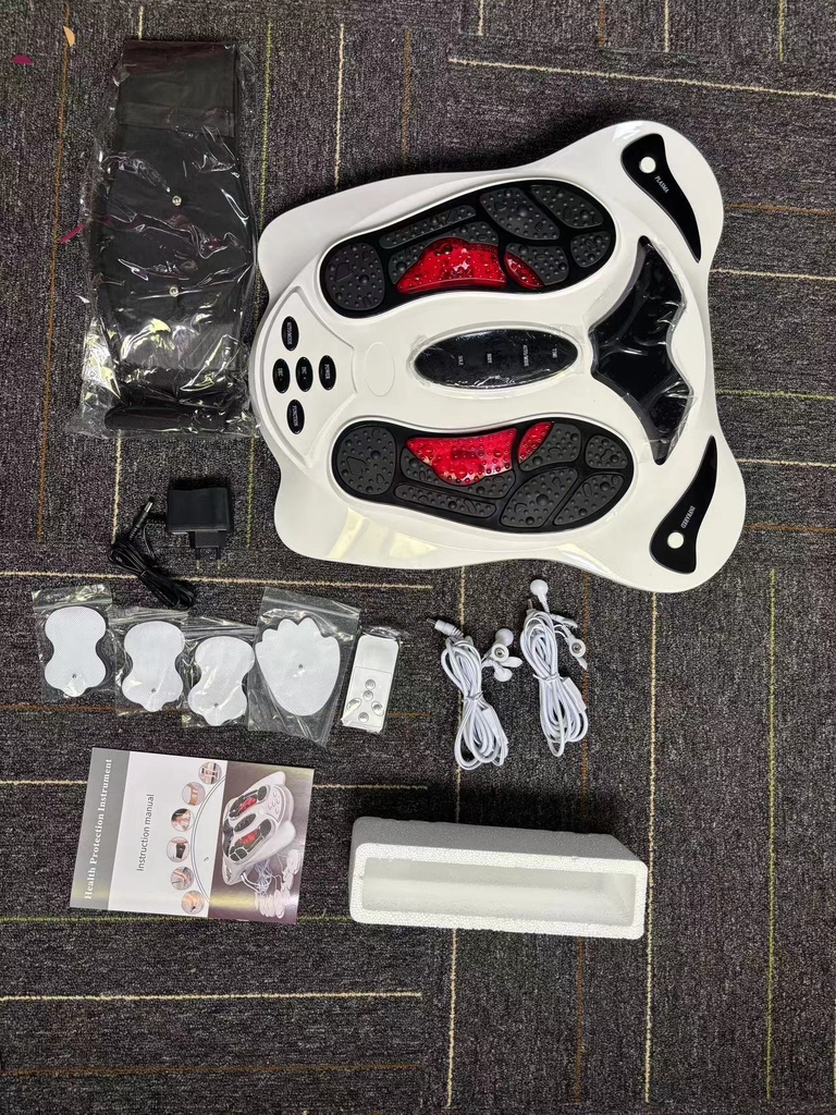| Bộ sản phẩm gồm | 1 máy massage chân, 1 sạc, 1 điều khiển từ xa, 8 miếng dán điện cực |