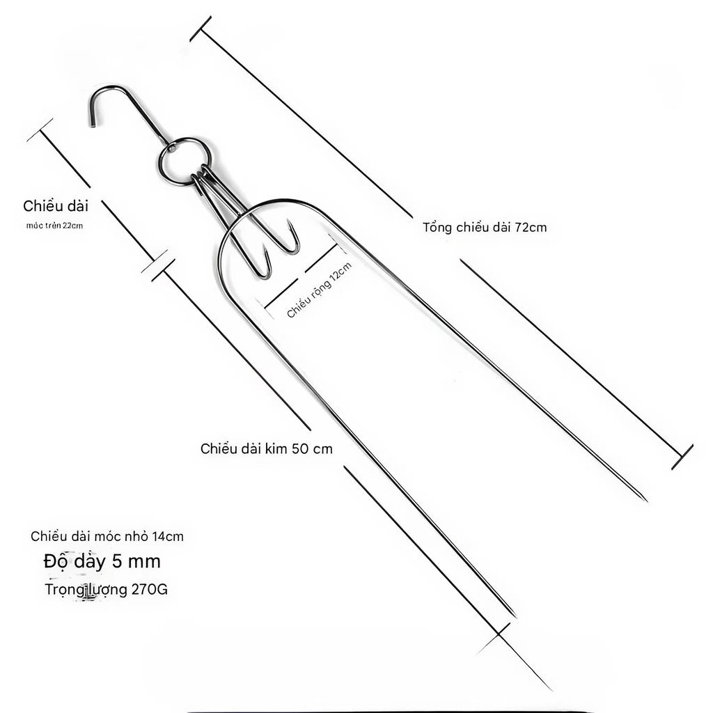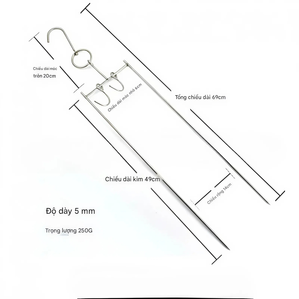 Móc inox vuông dày 14 × 69 cm, chắc chắn, chịu lực tốt, giữ heo sữa cố định khi quay.