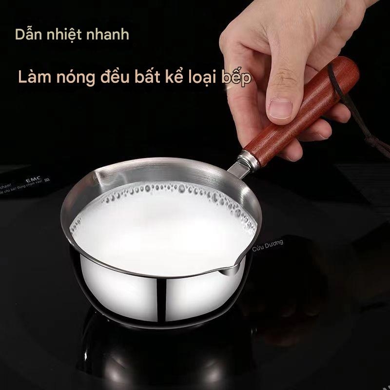 🥛 Nồi Sữa Mini 300ml Inox 304 – Tay Cầm Gỗ, Chiên Nấu Đa Năng PVN10052