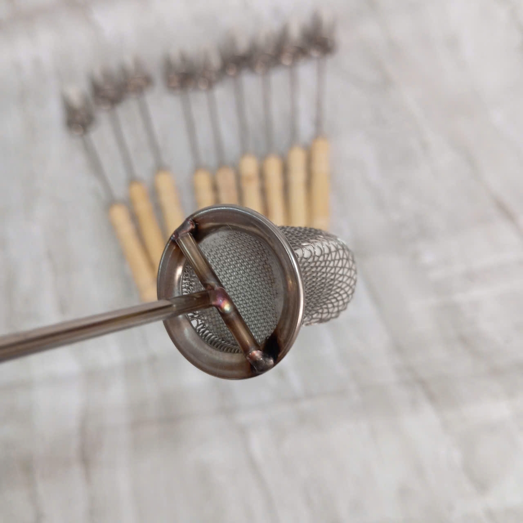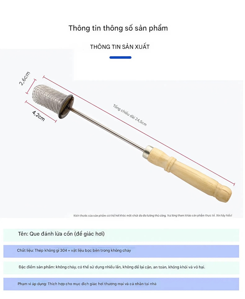 Đầu bông bọc lưới sắt: Giữ bông không rơi, kiểm soát ngọn lửa an toàn.