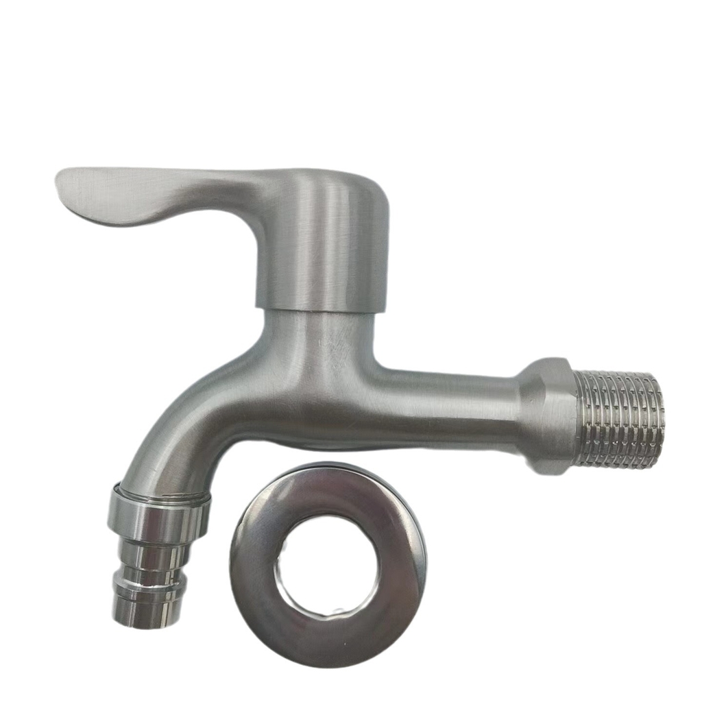 Bộ Vòi Nước Lạnh, Vòi Máy Giặt Nhà Tắm Inox 304 Cao Cấp Cổ Tay Cầm Phẳng